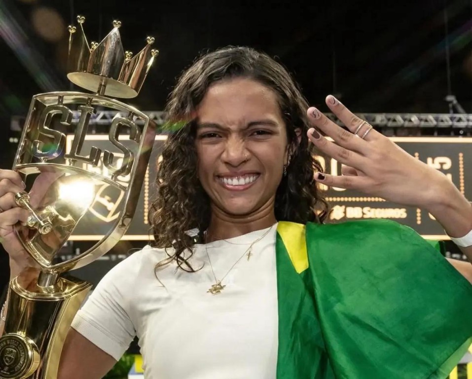 A fadinha do skate, Rayssa Leal, de apenas 17 anos, fez história neste domingo ao conquistar seu quarto título mundial da Street League Skateboarding (SLS)