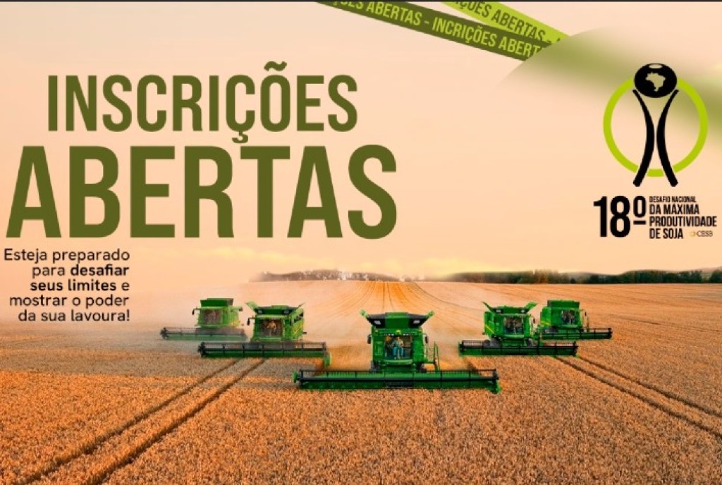 O Comitê Estratégico Soja Brasil (CESB) abriu, de 1º de novembro de 2025 a 31 de janeiro de 2026, as inscrições para o 18º Desafio Nacional de Máxima Produtividade da Soja, que estimula produtores a alcançarem o máximo potencial de rendimento da cultura.