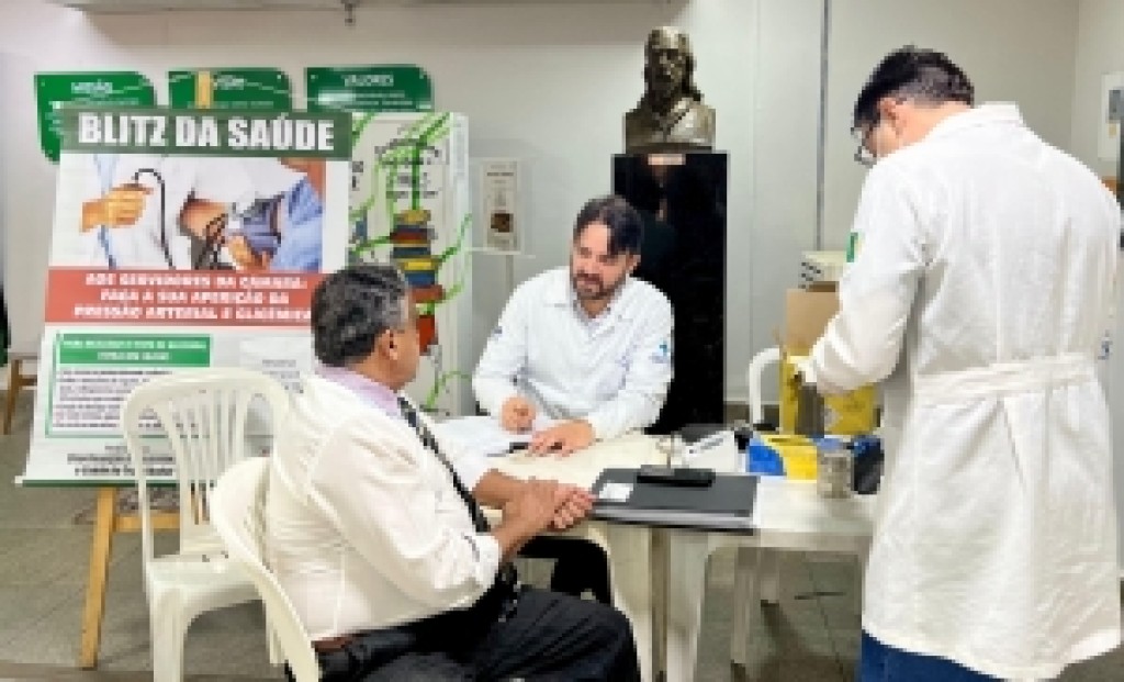 A blitz realiza aferição da pressão arterial e da glicemia, com registro dos dados dos servidores para acompanhamento médico contínuo. Caso alguma alteração seja identificada nos exames, o servidor é encaminhado para iniciar o tratamento com o médico da Casa.