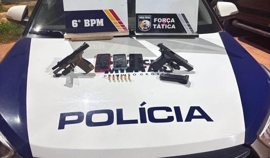 Policiais militares da Força Tática do 6º Comando Regional prenderam dois homens, de 18 e 19 anos, suspeitos pelo homicídio de Patrícia Joana das Neves, de 26 anos, e tentativa de homicídio conta um homem, de 41 anos, na madrugada desta quinta-feira (14.8), em Cáceres. Os suspeitos foram identificados como integrantes de uma facção criminosa. Com eles, foram apreendidas duas pistolas calibre 9 mm e 24 munições.