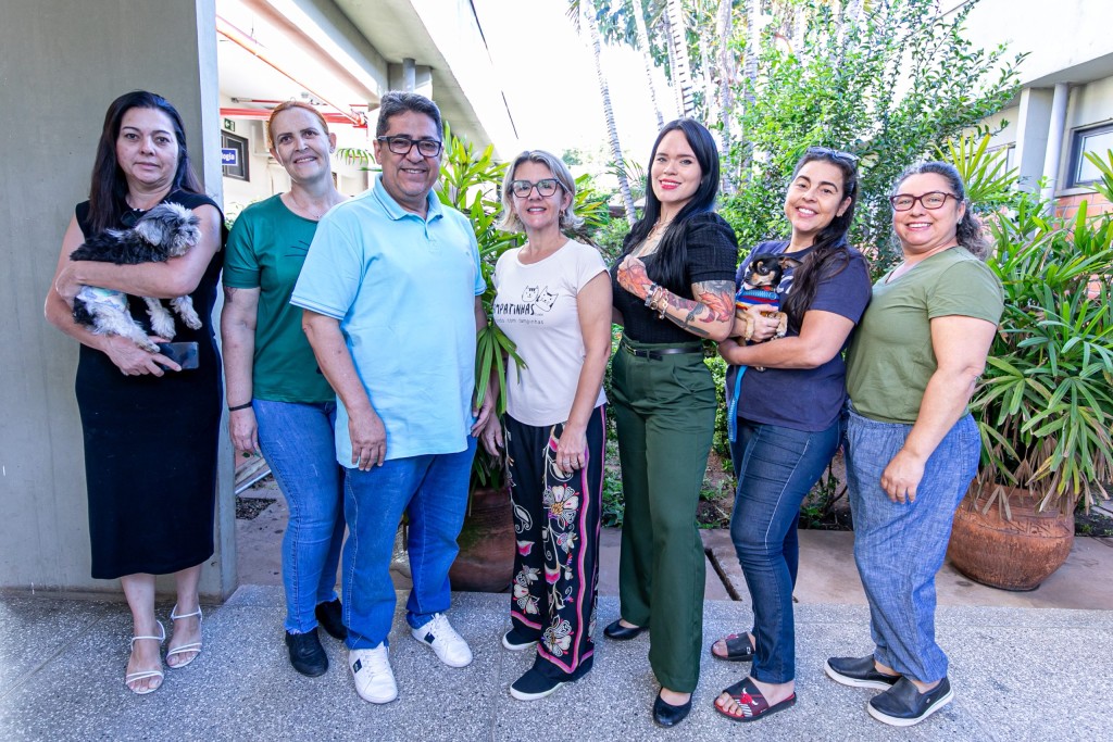 A matéria é ilustrada com a foto dos protetores, do secretário municipal de Governo, Ananias Filho, e da diretora de Bem-Estar Animal, Morgana Thereza Ens.