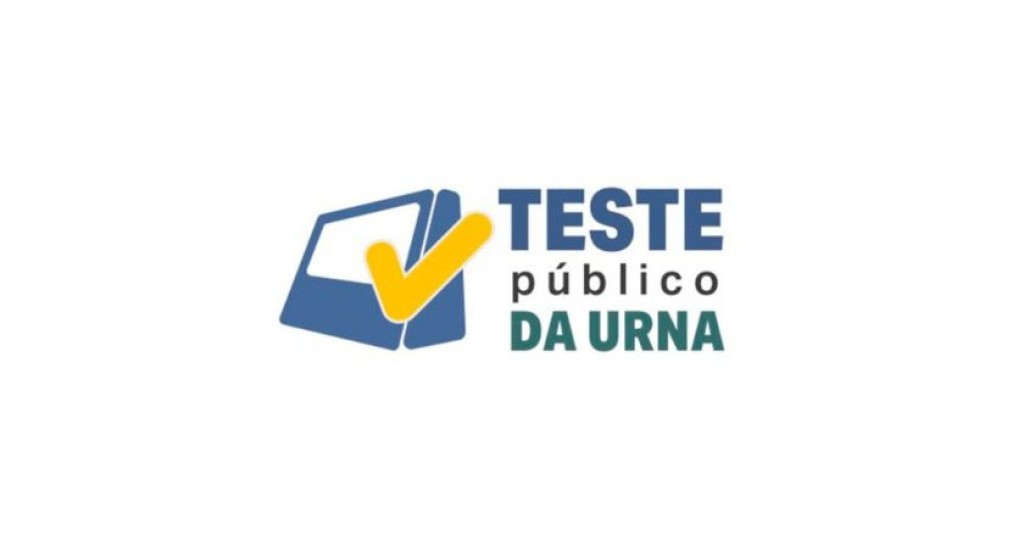 #PraTodosVerem: A imagem apresenta o logotipo do “Teste Público da Urna”, com uma ilustração estilizada de uma urna eletrônica em azul, acompanhada de um grande símbolo de check (✔️) amarelo sobreposto. Ao lado direito, o texto está disposto em três linhas: “TESTE” em azul escuro e letras maiúsculas, “público” em preto e minúsculas, e “DA URNA” em verde escuro e maiúsculas. A composição transmite a ideia de verificação e transparência no processo eleitoral, reforçando a confiabilidade das urnas eletrônicas.