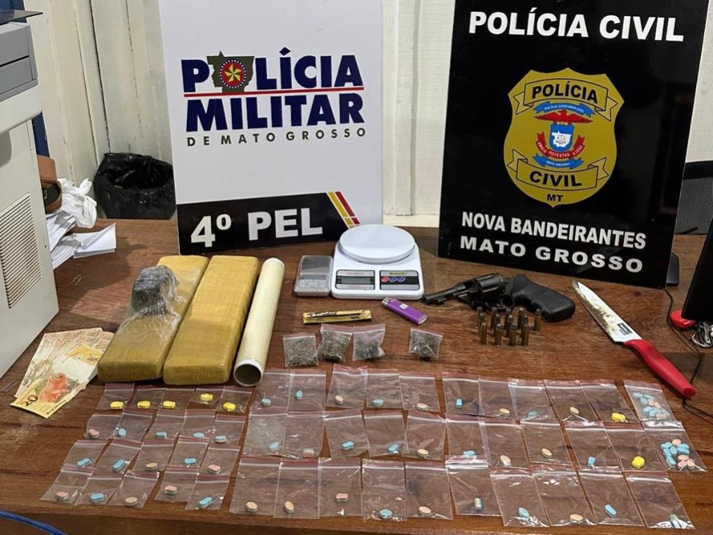 As Polícias Civil e Militar prenderam em flagrante, na última terça-feira (9.12), em Nova Bandeirantes, uma mulher, de 24 anos, por porte ilegal de arma de fogo e tráfico de drogas. Nessa quinta-feira (11), a prisão foi convertida em preventiva.